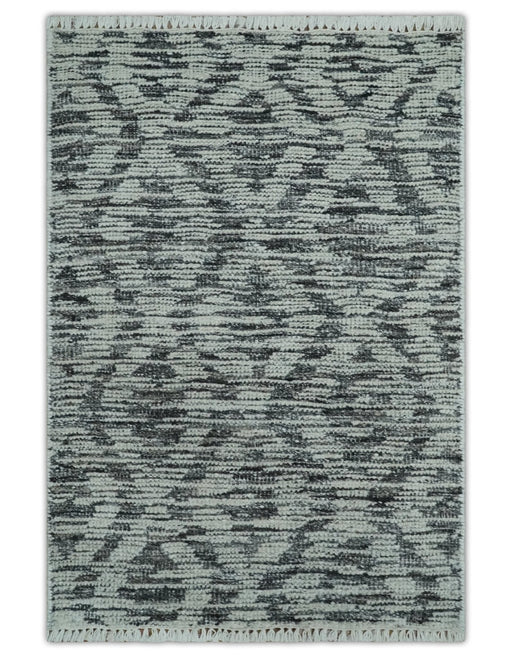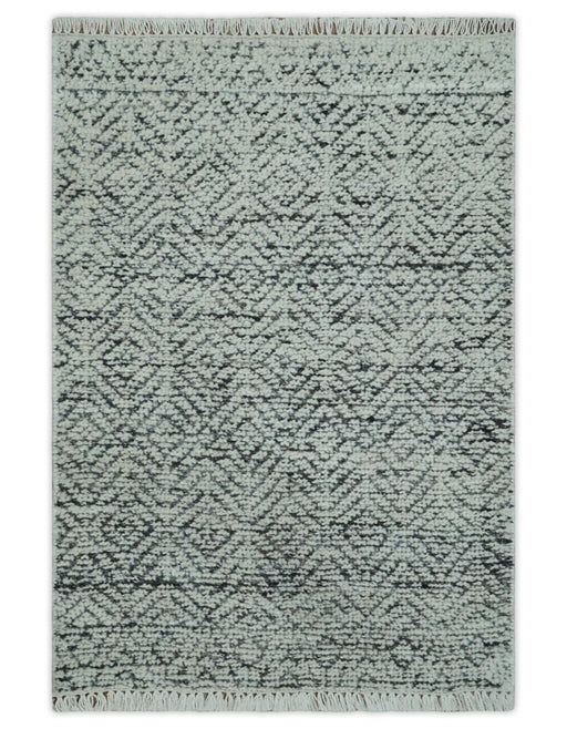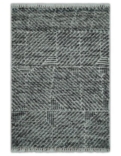 View full detailsThis 2x3 hand knotted wool rug made of silver and charcoal threads offers a geometrical style with timeless sophistication. The wool provides a sof...