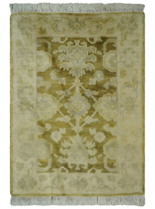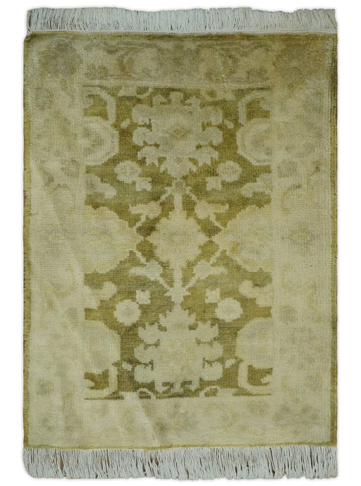 2x3 Brown and Beige Handmade Classic Vintage Design Wool Area Rug | TRDCP15723