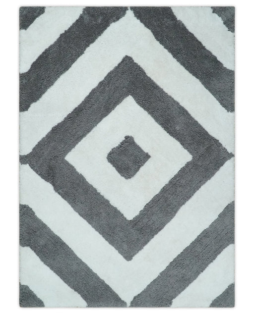 View full detailsThis 3x5, 4x6, and 5x7 Hand Woven Shag area rug brings style and comfort to any space. Featuring an Ivory and Gray Geometrical pattern, it's made f...