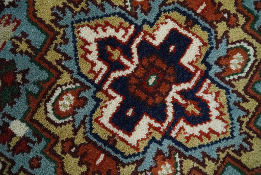 View full detailsThis Traditional Mustard, Aqua and Ivory and Brown Heriz Serapi Hand Knotted wool area rug is crafted with intricate detail to create a stunning cl...
