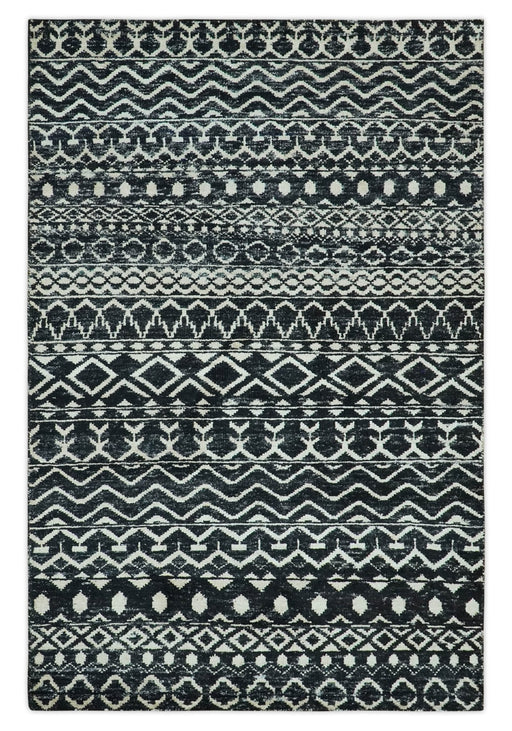 View full detailsThis 5.6x8.6 Black and Ivory Hand Knotted Southwestern Tribal Trellis wool Area Rug is expertly crafted with intricat...