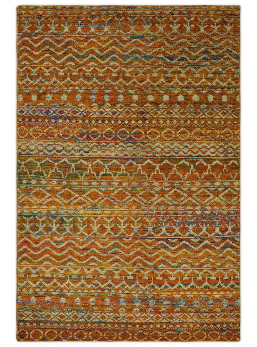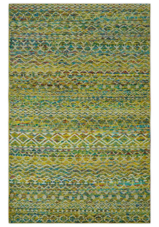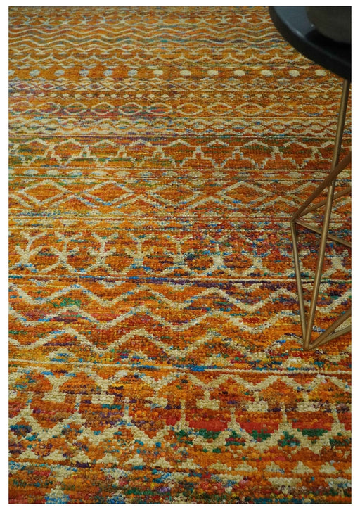 This Hand-Knotted Rug has been Made with Handspun Recycled Silk. The beautiful colors of the rug and the modern design of the rug complete your spa...