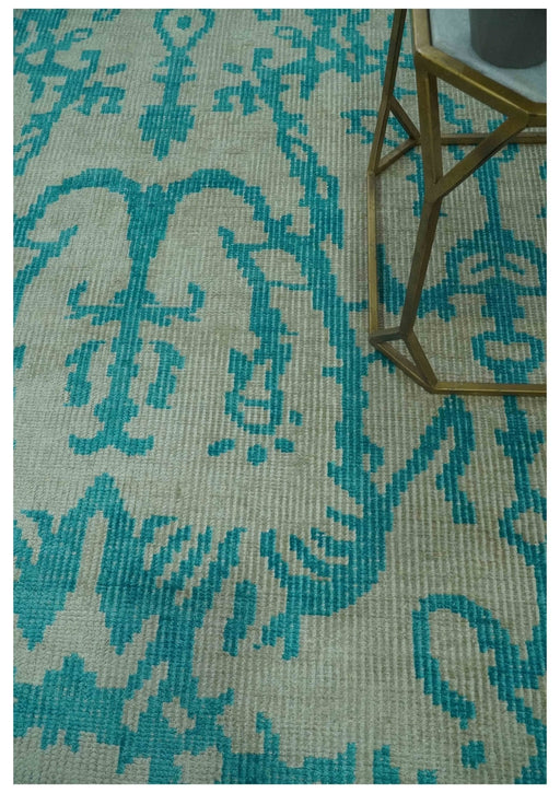 View full detailsThis 5.8x8 Teal and beige Hand hand-knotted traditional Large Design viscose Area Rug is a timeless addition to any room. Its intricate design and ...