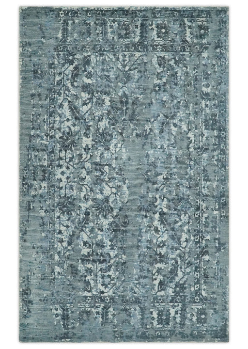 View full detailsExpertly hand-knotted with a contemporary abstract design, this 5x8 wool rug features a trendy mix of green, charcoal, ivory, and silver. Made with...