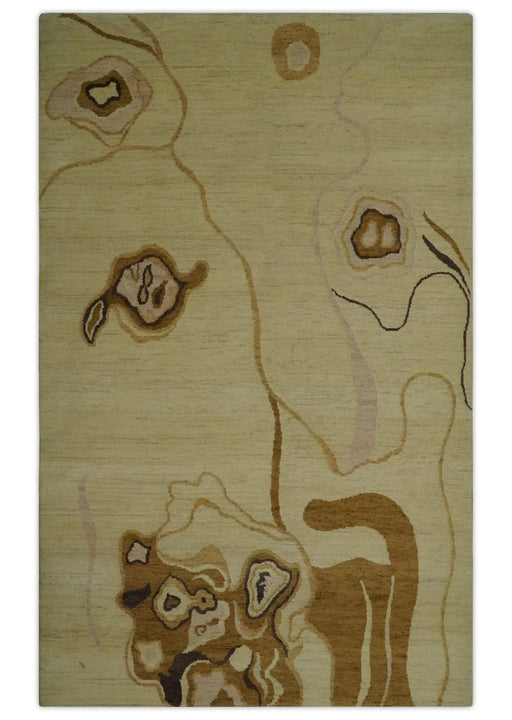 View full detailsThis modern abstract wool rug features a timeless design of olive, beige and brown colors. Hand-knotted with meticulous attention to detail, this 5...