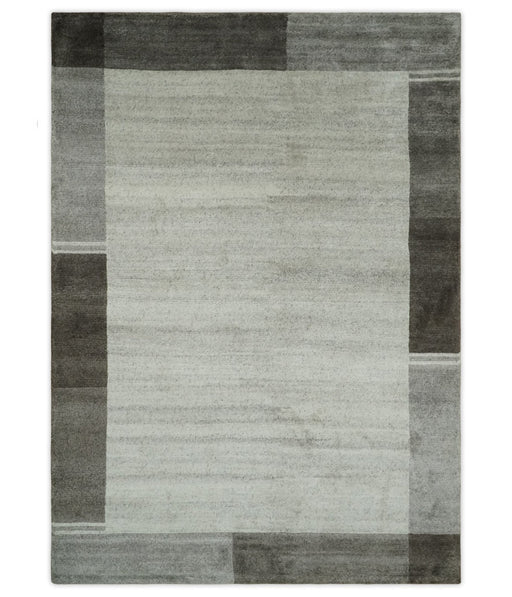 View full detailsElevate your living space with this Modern Solid Design area rug, expertly hand-knotted from premium wool. Measuring 9x12 feet, it features a sophi...