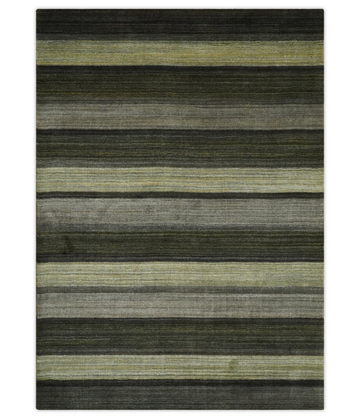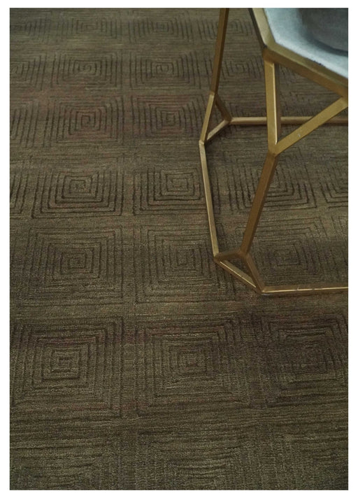 View full detailsThis contemporary 5x8 area rug is handloomed with a combination of wool and art silk and features a modern geometric pattern in an olive hue. Its h...