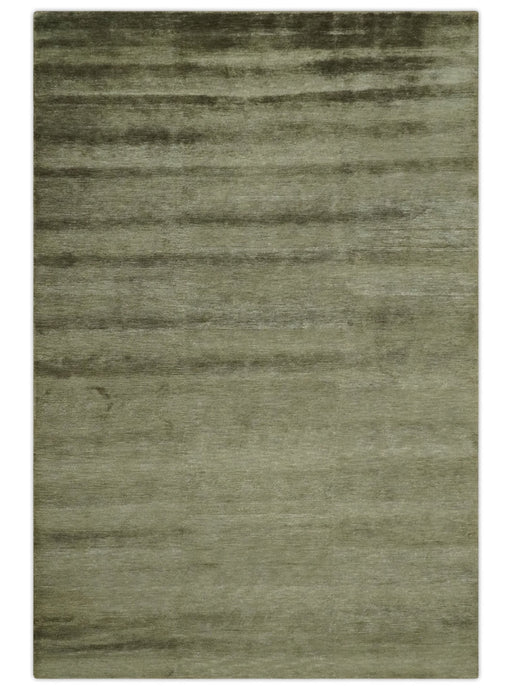 View full detailsThis modern hand-knotted 6x9 rug is made from luxurious bamboo silk, creating a plush and durable surface. The solid Olive color add...