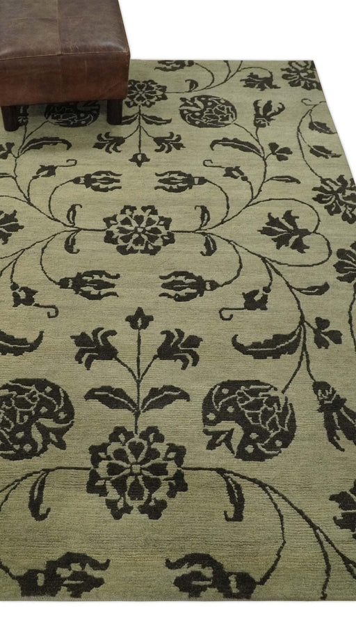 View full detailsThis olive and Dark green Hand Knotted Floral Area Rug is made from premium wool and silk which gives it a unique luxurious feel. Featuring a beaut...