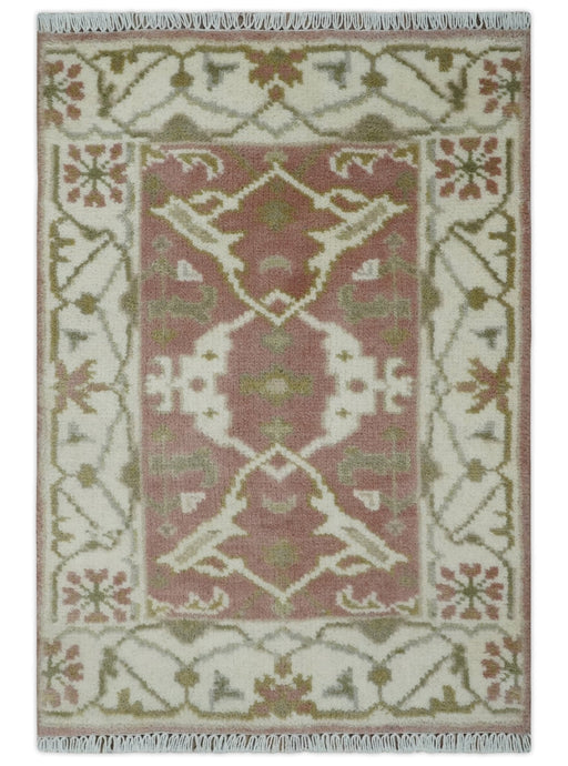 View full detailsThis 2x3 Oriental Oushak Wool Area Rug is beautifully hand knotted in Peach, Ivory and Olive. Its classic design and premium material makes this ru...