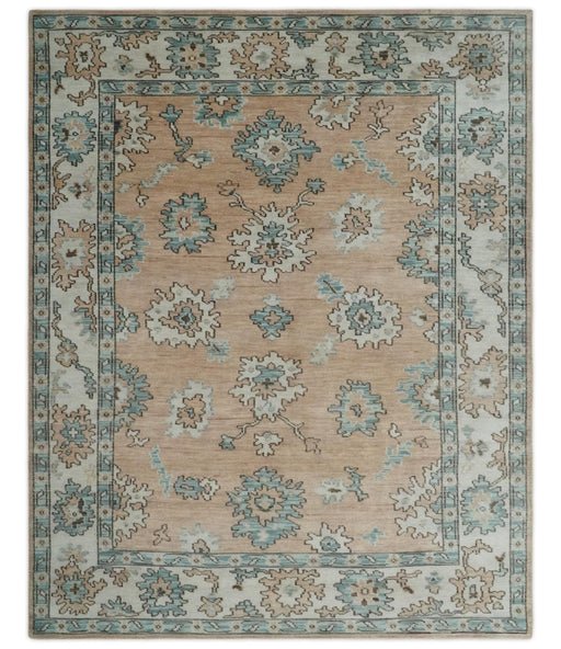 View full detailsThis Peach, Ivory and Teal Hand knotted Traditional Oushak wool Rug offers an elegant look for any space. With a traditional Oushak 8x10 design, th...