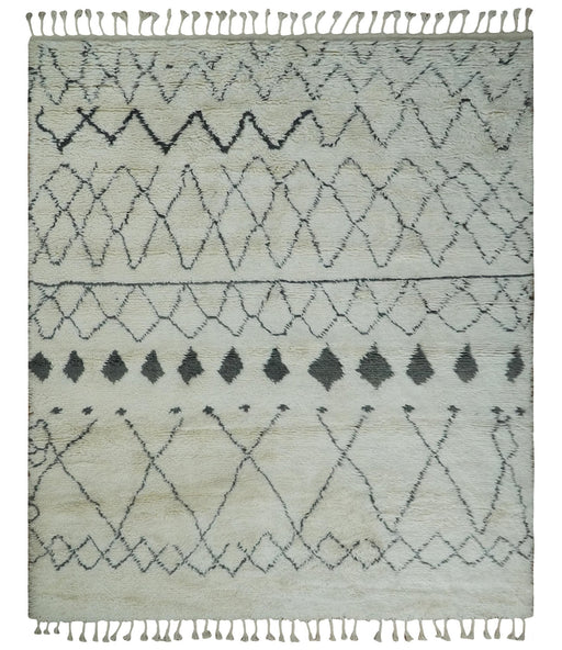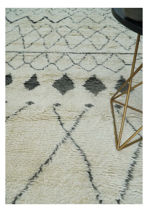 View full detailsThis Plush Thick Beni Ourain Moroccan Rug is 8'x10.5' and made with fine wool, ensuring its softness and durability. The ivory and charcoal geometr...
