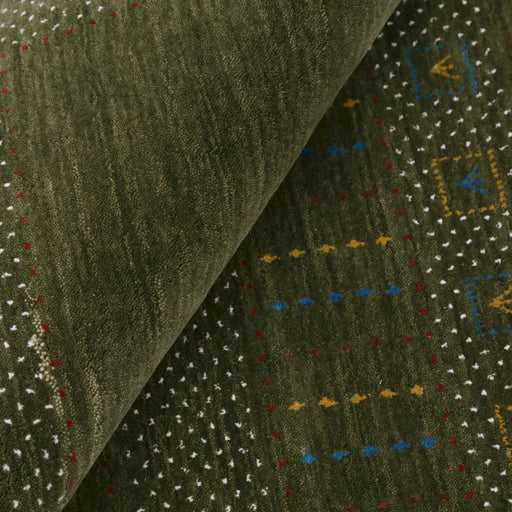 View full detailsThis Ready to Ship Green Tribal Gabbeh Design Hand Loomed Wool Area Rug is made with quality wool and features a unique tribal Gabbe...