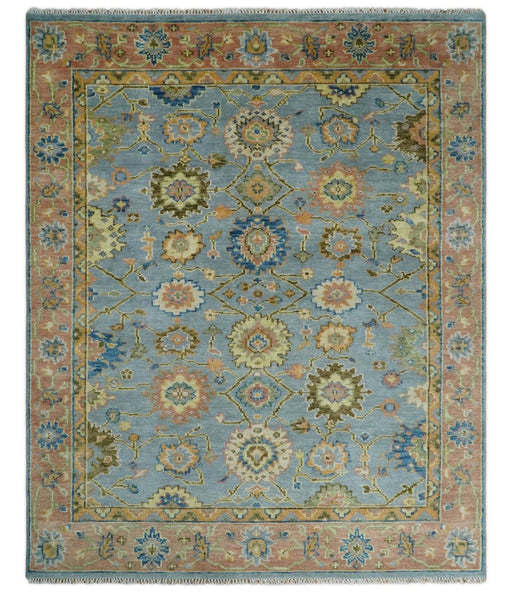 This beautiful 8x10 and 9x12 area rug is hand knotted in an intricate Oriental Oushak design with blue and gray wool. The multi-sized pattern will ...