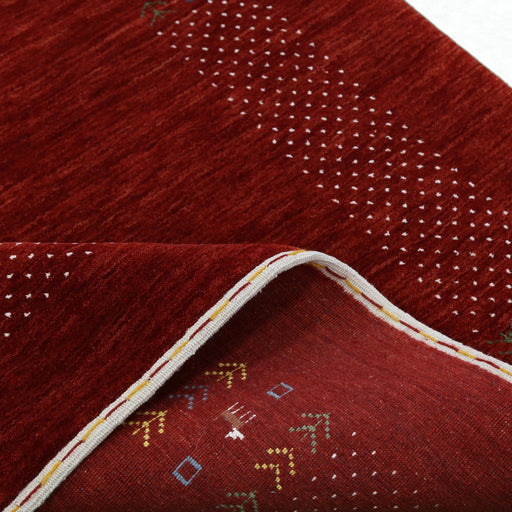 View full detailsThis Ready to Ship Red Gabbeh Tribal Design Hand Loomed Wool Area Rug is expertly crafted with hand loomed wool and features a tradi...