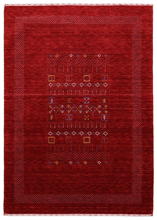 View full detailsThis hand loomed wool rug features a striking red Gabbeh border design, adding a touch of warmth and elegance to any room. Crafted w...