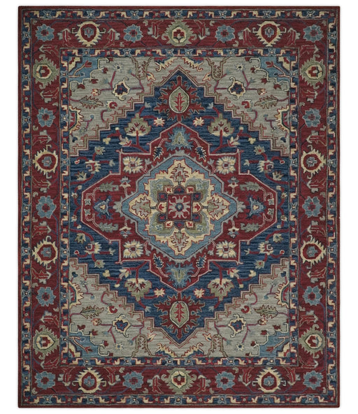 Ready to Ship Red Contemporary Center Design Hand Loomed Wool Area Rug