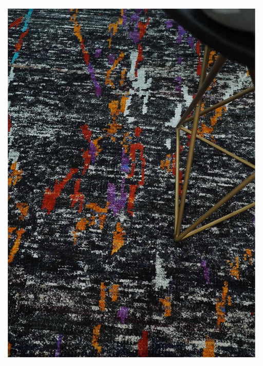 View full detailsThis 5X8 Hand-Knotted Black and Ivory Modern Abstract Contemporary Recycled Silk Area Rug is expertly crafted from upcycled silk, creating a truly ...