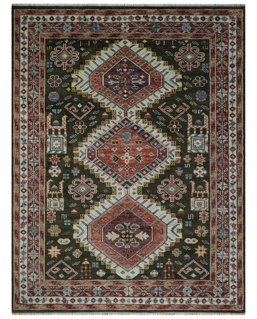 Rust, Gold and Gray Traditional Hand knotted Custom Made wool Area Rug