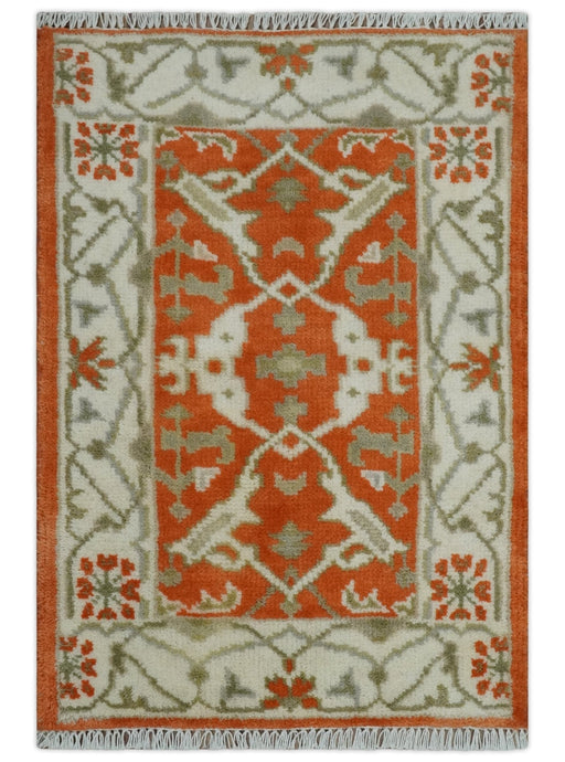 View full detailsThis 2x3 Oriental Oushak Wool Area Rug is beautifully hand knotted in rust, ivory, and olive. Its classic design and premium material makes this ru...