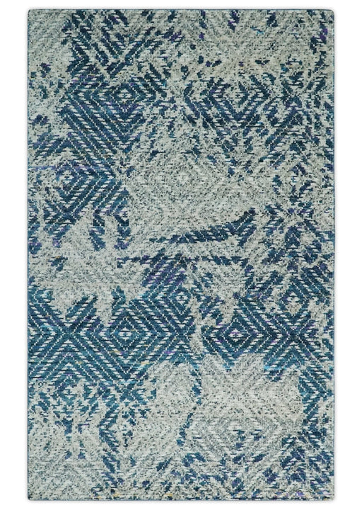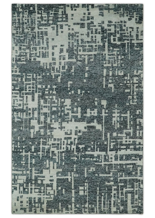 View full detailsThis 5x8 Hand Knotted Silver, Charcoal, and Ivory Modern Abstract Contemporary Recycled wool Area Rug provides an elegant, contemporary accent for ...