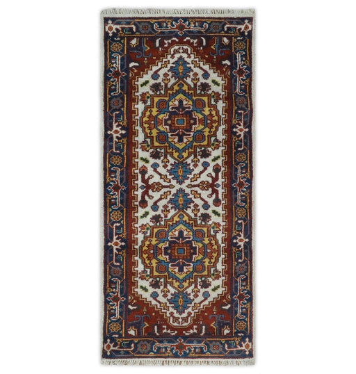 View full detailsThis 2.6x6 wool hand-knotted area rug is a perfect blend of classic and contemporary. Featuring a traditional Heriz Serapi design in gold, ivory, b...