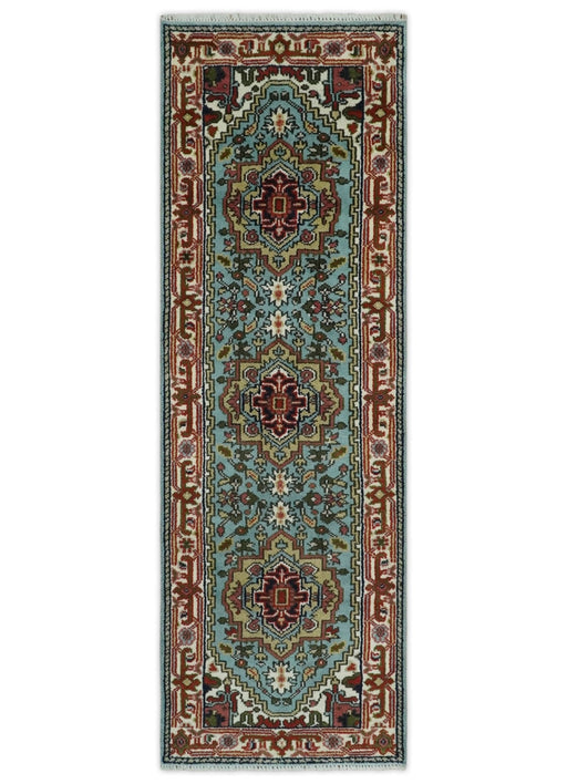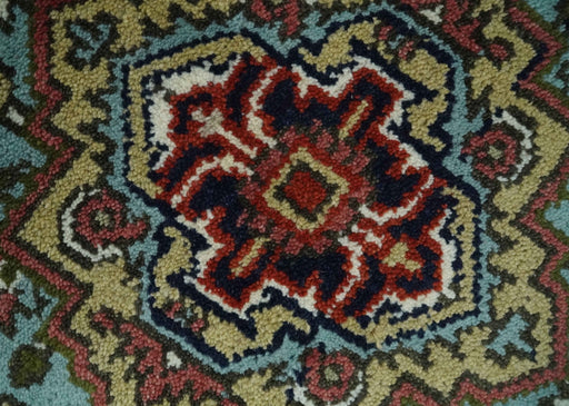 View full detailsThis Traditional Mustard, Aqua and Ivory Heriz Serapi Hand Knotted wool area rug is crafted with intricate detail to create a stunning classic piec...