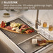 Reimagine your kitchen with the MultiSINK Pro T-Faucet Workstation a sculpted centerpiece designed for beauty, versatility, and performance. Its 3-level layout and 10" deep basin create seamless zones for prep, rinse, and cleanup. The stainless steel T waterfall faucet offers three spray modes for pro-level control, while the integrated glass washer keeps drinkware spotless. A dual-function bamboo cutting board, stainless steel colander, and four roll-up grids adapt to your workflow, while two removable drying grilles add utility to the deck without clutter. With dual-mount flexibility, cUPC certification, and precision-crafted details, MultiSINK brings timeless design to the heart of your kitchen.