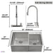 FORNO ACQUA 33 in. Drop-In/Undermount 40/60 Double Bowl Stainless Steel Sink with Waterfall Faucet