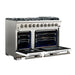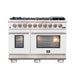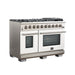 FORNO Capriasca 48-inch Gas Range Stainless Steel, 8 Brass Burners 160,000 BTU, 6.58 cu.ft. Double Oven, White Doors
