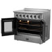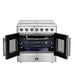 The Forno Galiano 36 Inch French Door Alta Qualita Pro-Style Freestanding Electric Range elevates your home kitchen with professional styling and enduring quality, featuring a robust stainless-steel design. The french door design will make your everyday cooking task easier allowing up to 12 Inch opening for an easy access of your oven. Boasting 5 radiant elements, the cooking surface delivers a total output of 7,700 watts. The 5.36 cu. ft. capacity oven enhances cooking flexibility with a combined broil and bake output of 4,800 watts, complemented by a 1,500 watts true convection fan for precision. This unit includes 2 chromed oven racks, an Air Fryer kit, and a 4-prong power cord (NEMA 14-50P), providing both versatility and convenience.