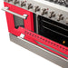 Forno Galiano 48-Inch Freestanding Gas Range, Stainless Steel, 8 Burners, 107,000 BTU, Griddle, Double Ovens, Energy Efficient, Red Doors