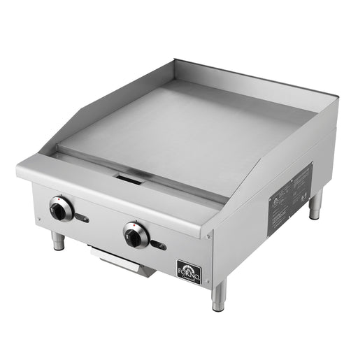 View full detailsThis 24 Inch Commercial Gas Griddle delivers 60,000 BTUs of cooking power with two burners and a heavy duty 1 inch carbon steel griddle plate. Buil...