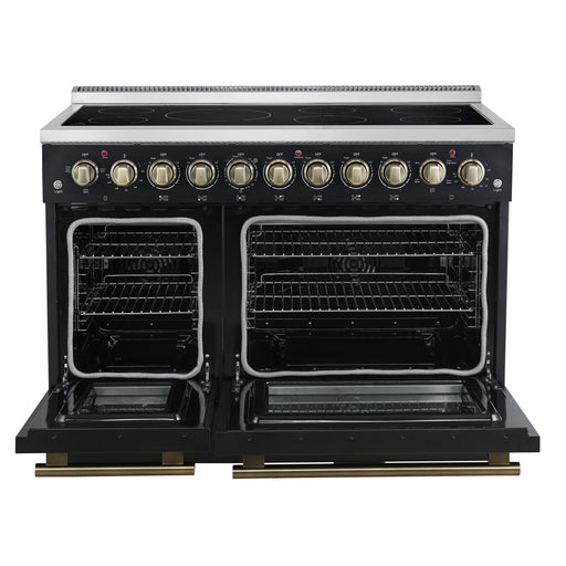 View full detailsThe Forno Paolo 48 Inch Electric Range in Black with Antique Brass Knobs and Handles combines power and style for the modern kitchen. Its smooth ce...