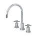 This faucet boasts bold, sleek design with its cylindrical styling. Able to fit a variety of sink set-ups, widespread kitchen faucets can be utilized in several multi-hole configurations. These are ideal for larger kitchens, as they are more spread apart, and feature a 3-hole installation. The polished chrome finish will also add a glistening elegance to your kitchen ensemble. Allow the brass construction to provide a sturdy and reliant fixture. Matching accessories are available for use.