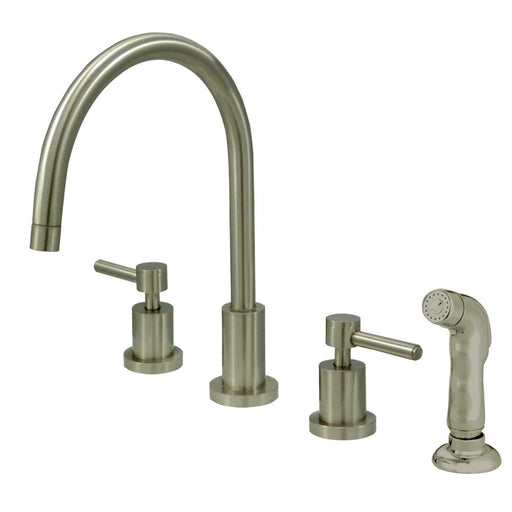 This faucet boasts bold, sleek design with its cylindrical styling. Able to fit a variety of sink set-ups, widespread kitchen faucets can be utiliz...