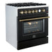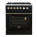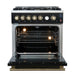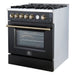 Giovanni 30-inch Gas Range Black & Antique Brass Design, 5 Burners 67,000 BTU, 4.32 cu.ft. Convection Oven