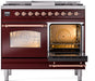 ILVE Nostalgie II 40" Dual Fuel Natural Gas Range in Burgundy with Copper Trim, UPD40FNMPBUP