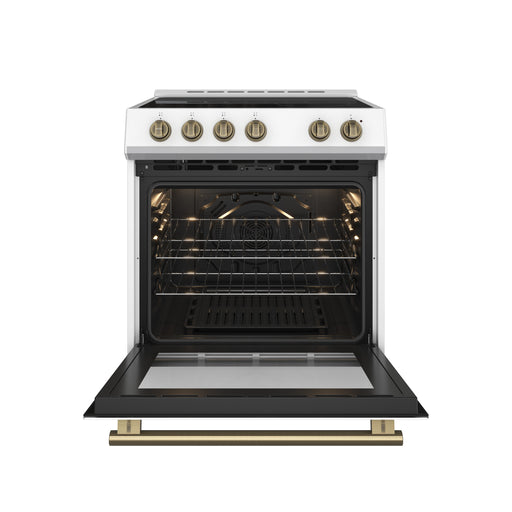 View full detailsIntroducing the Forno Leonardo Espresso 30 Inch 5.0 cu. Ft. White Electric Range, a kitchen game-changer. With Antique Brass accents, 4 Radiant Ele...