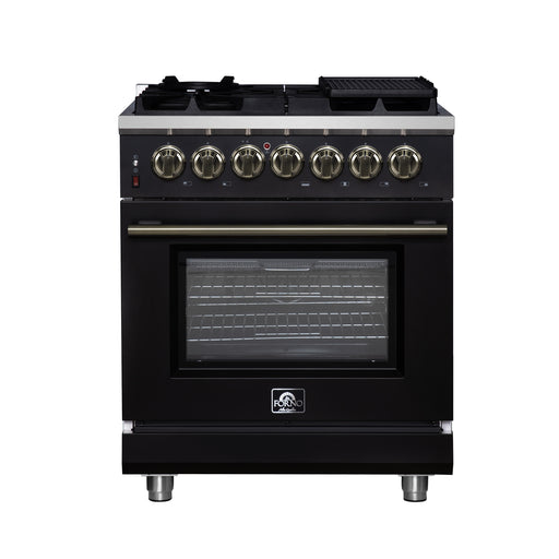 View full detailsThe Massimo 30 Inch Dual Fuel Range in Black with Antique Brass Accessories blends professional performance with modern design. The cooktop feature...