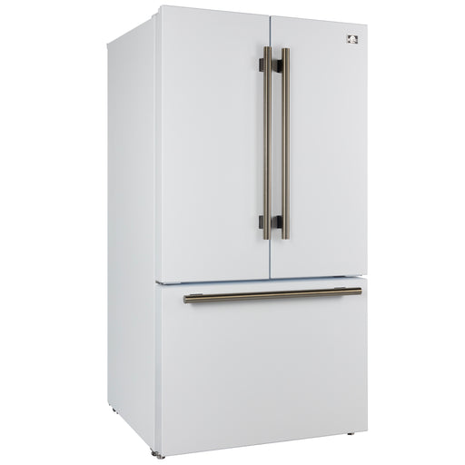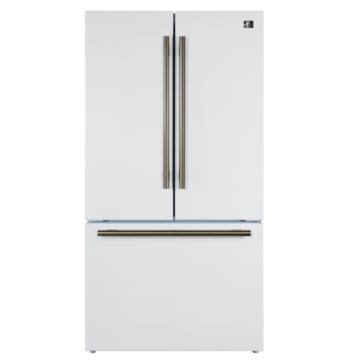 View full detailsThe Rivello 36 Inch French Door Refrigerator in White with Antique Brass handles offers spacious, energy-efficient cooling with a sleek, smudge-res...