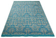 10x14 Hand Knotted Gray and Blue Modern Contemporary Southwestern Tribal Trellis Bamboo Silk Area Rug | OP34