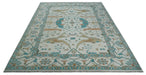 10x14 Ivory and Teal Hand knotted Oriental Oushak Traditional Wool Area Rug