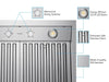 The four bright warm dimmable LED lights provide great visibility and the filters are dishwasher safe and reusable, making them easy to clean. This range hoods 24" depth also provides great coverage over your burners making it more effective at capturing harmful smoke and odors.