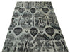 4x6 and 8x10 Hand Knotted Ivory, Charcoal and Brown Antique Persian Style Contemporary Recycled Silk Area Rug | OP46