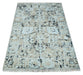4x6 Fine Hand Knotted Aqua, Beige and Black Traditional Vintage Persian Style Antique Wool and Bamboo Silk Rug | AGR10