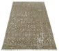 4x6 Fine Hand Knotted Olive and Silver Traditional Vintage Persian Style Antique Wool and SIlk Rug | AGR16