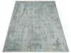 5.8x7.9 Modern Abstract Blue and Brown Rug hand made wool rug