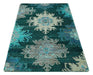 5x8 Green, Ivory and Blue Traditional Large design hand knotted wool area rug