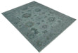 Antique look Bluish Gray Hand knotted Traditional Oushak Multi Size wool area Rug